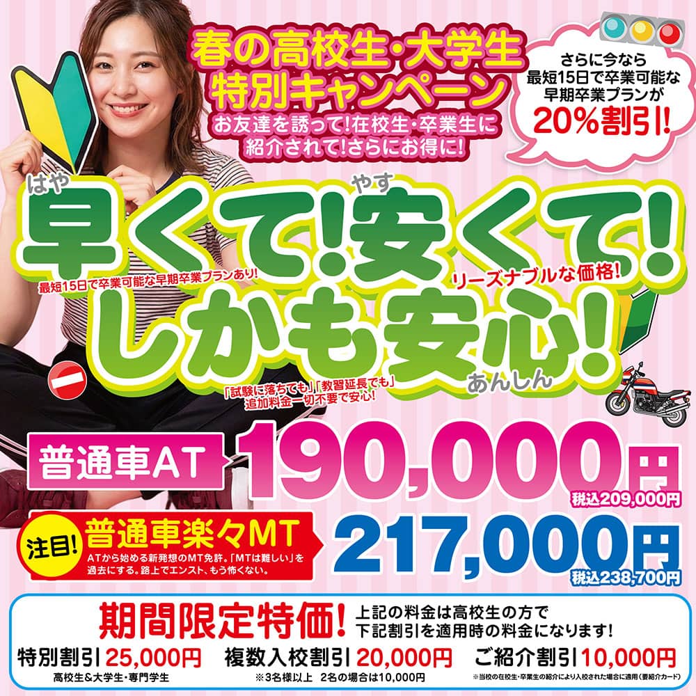 当校で一番安い価格でご提供!また友達・同級生を誘って入校すると